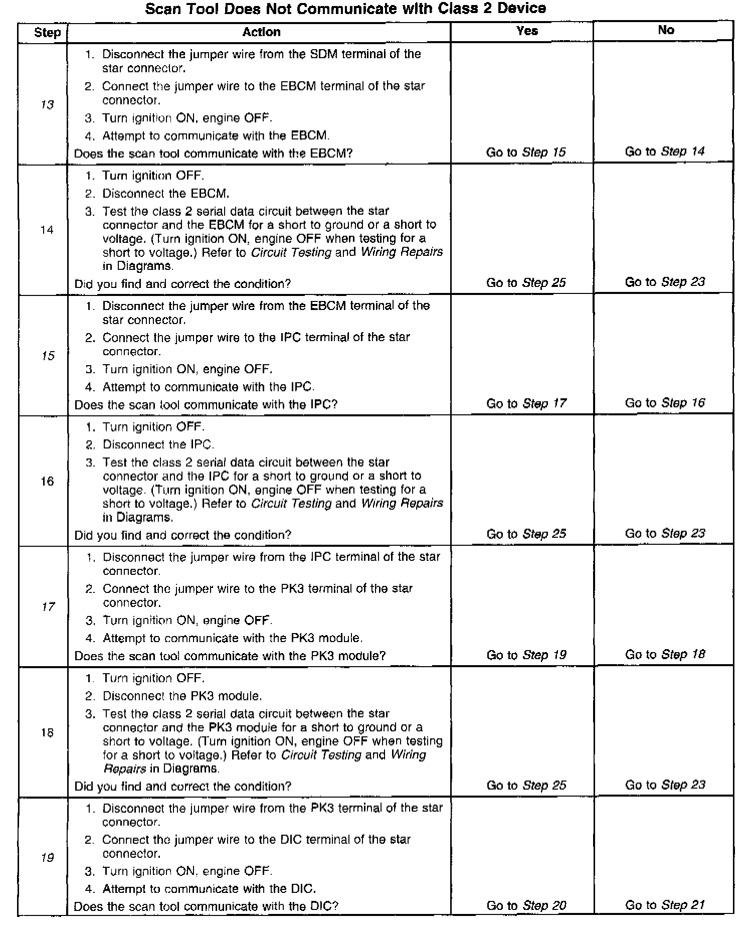 13. This test isolates the EBCM class 2 serial data circuit.