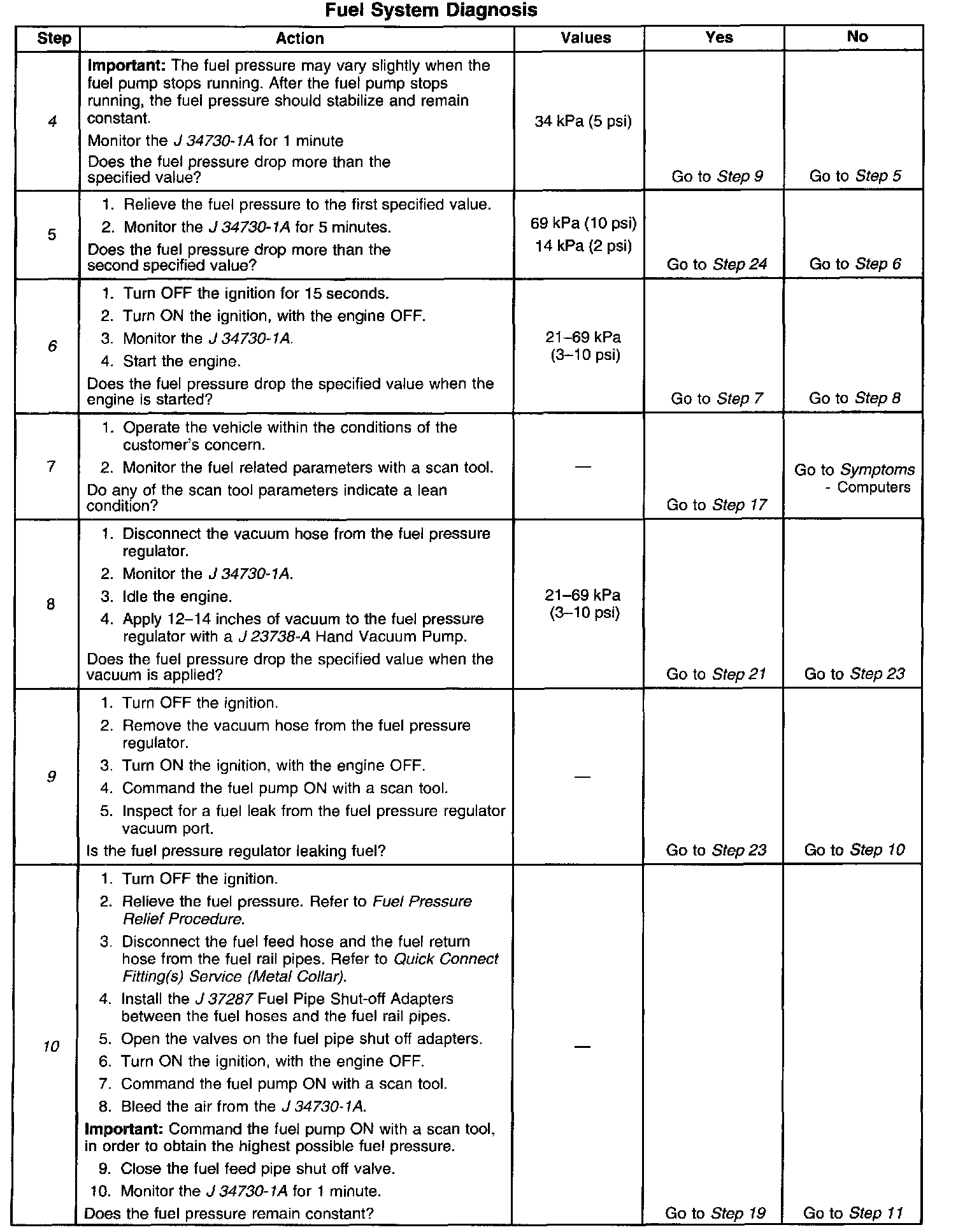 11. This step tests for a leaking fuel injector, or fuel pressure regulator. If the fuel pressure remains constant during this test, the fuel injectors are not leaking fuel.
