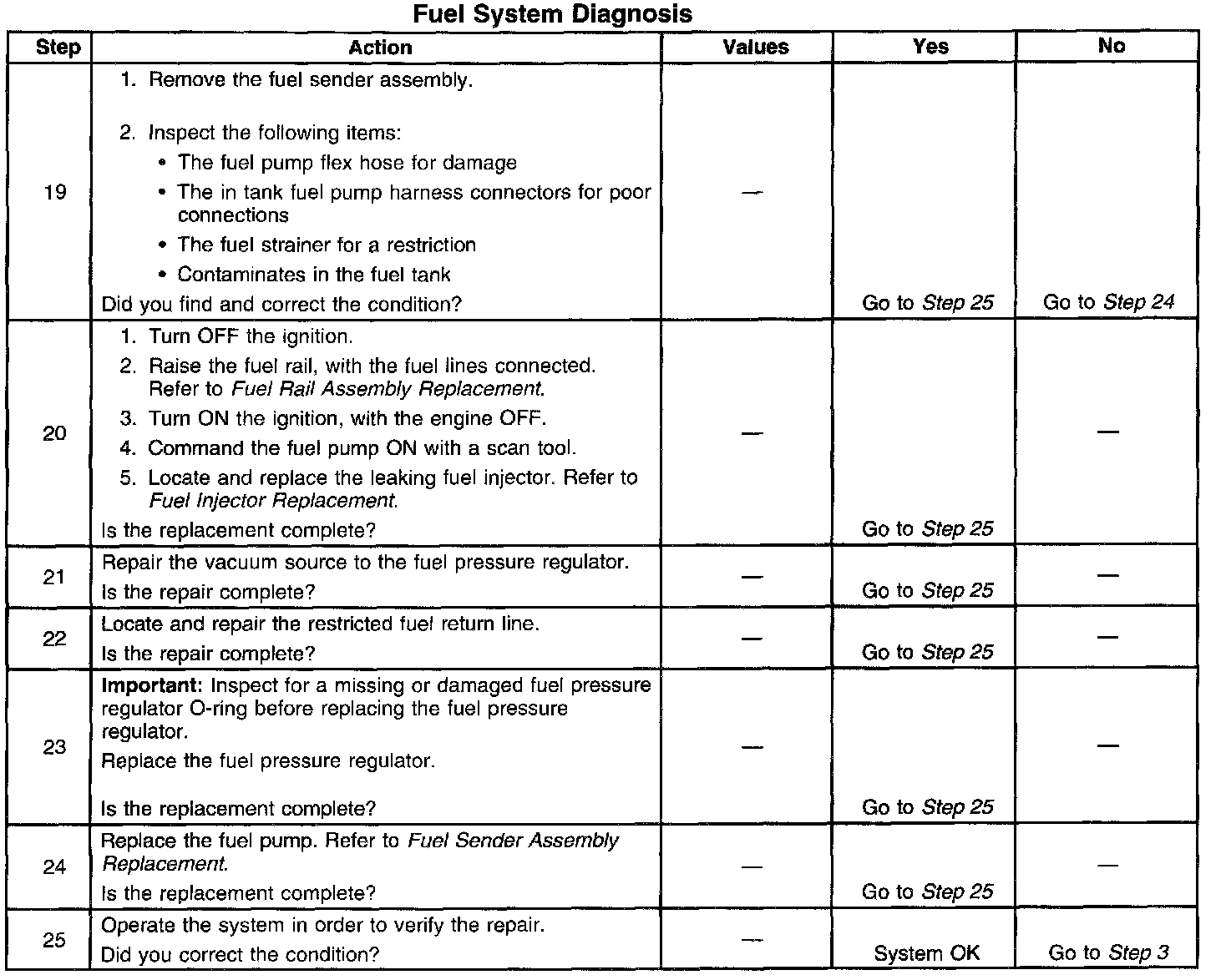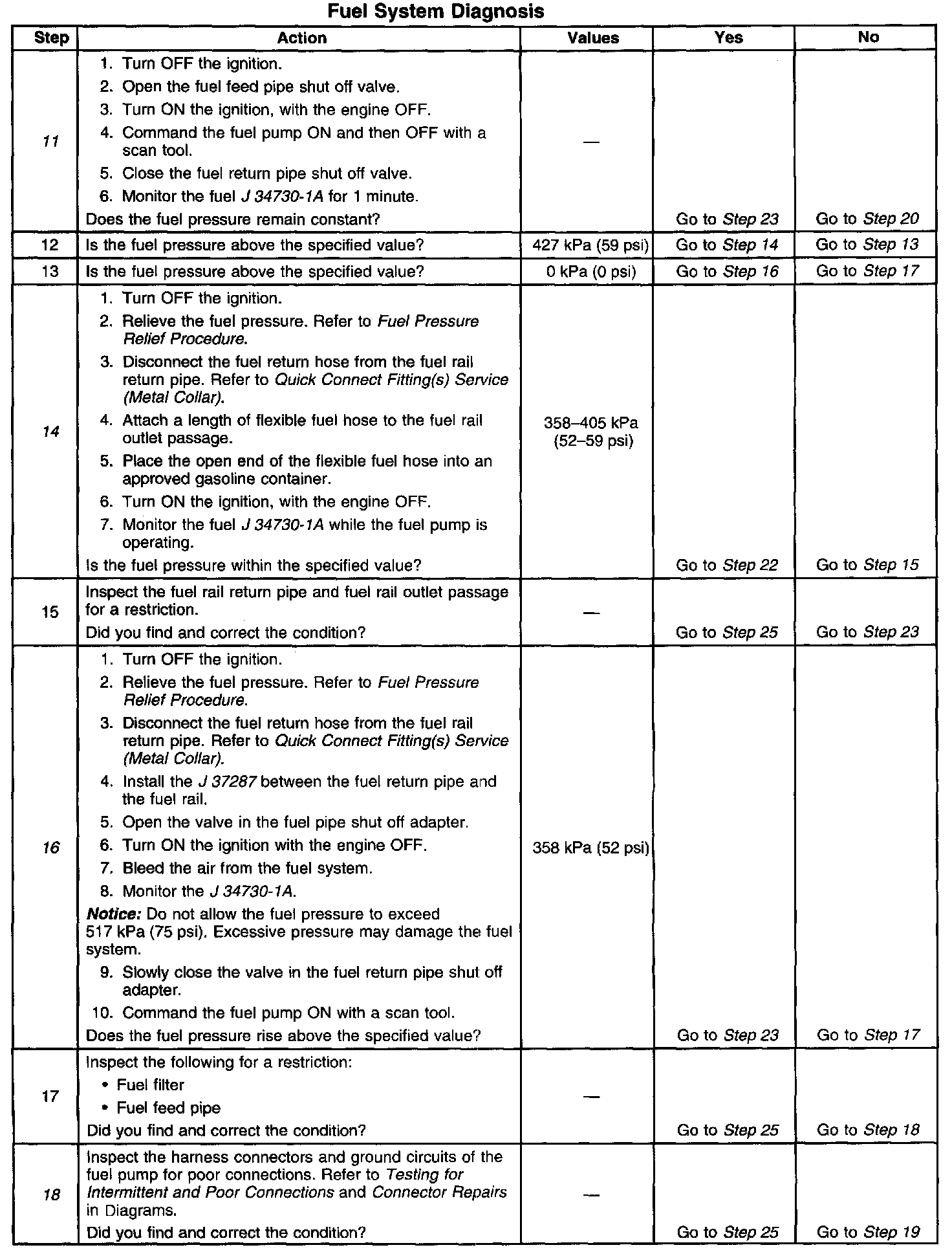18. This step verifies that a circuit condition is not the cause of a fuel pressure concern. Inspect all fuel pump electrical circuits thoroughly.