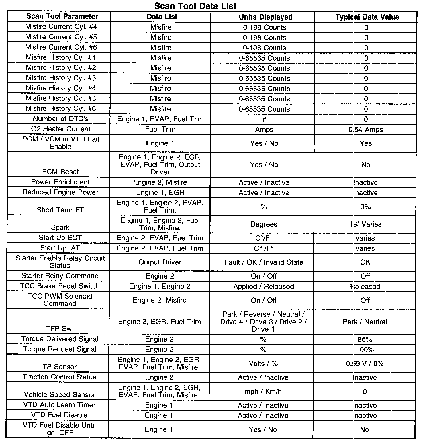 Scan Tool Data List - Powertrain System