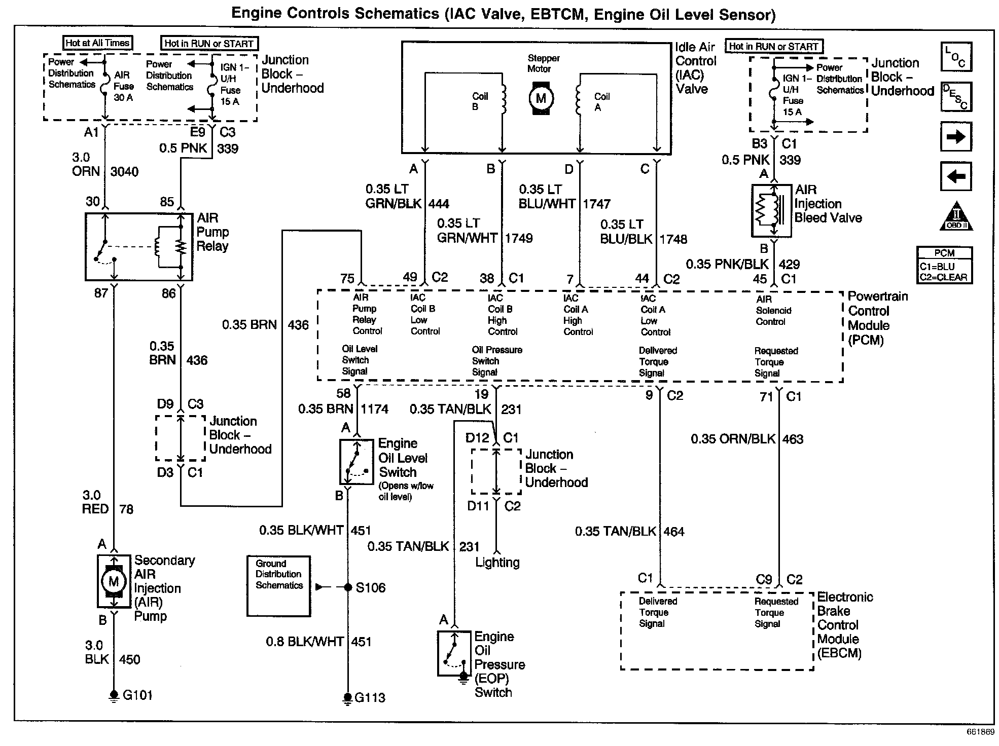 Engine Controls Schematics: IAC Valve, EBTCM, Engine Oil Level Sensor: