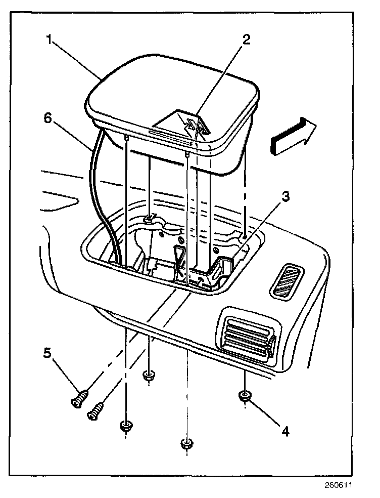 1. Install the inflatable restraint IP module (1) to the vehicle.