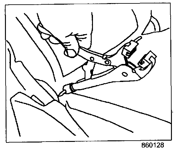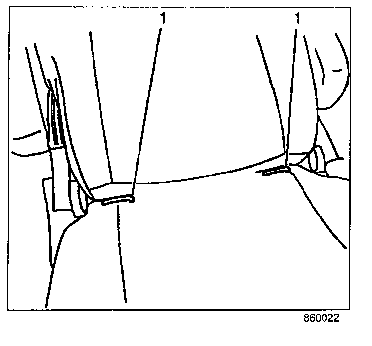 2. Fully recline the seat back to access the two anchors (1) in the seat. On vehicles with a split bench, tool access for the inspection can be improved by tilting the seat back forward.