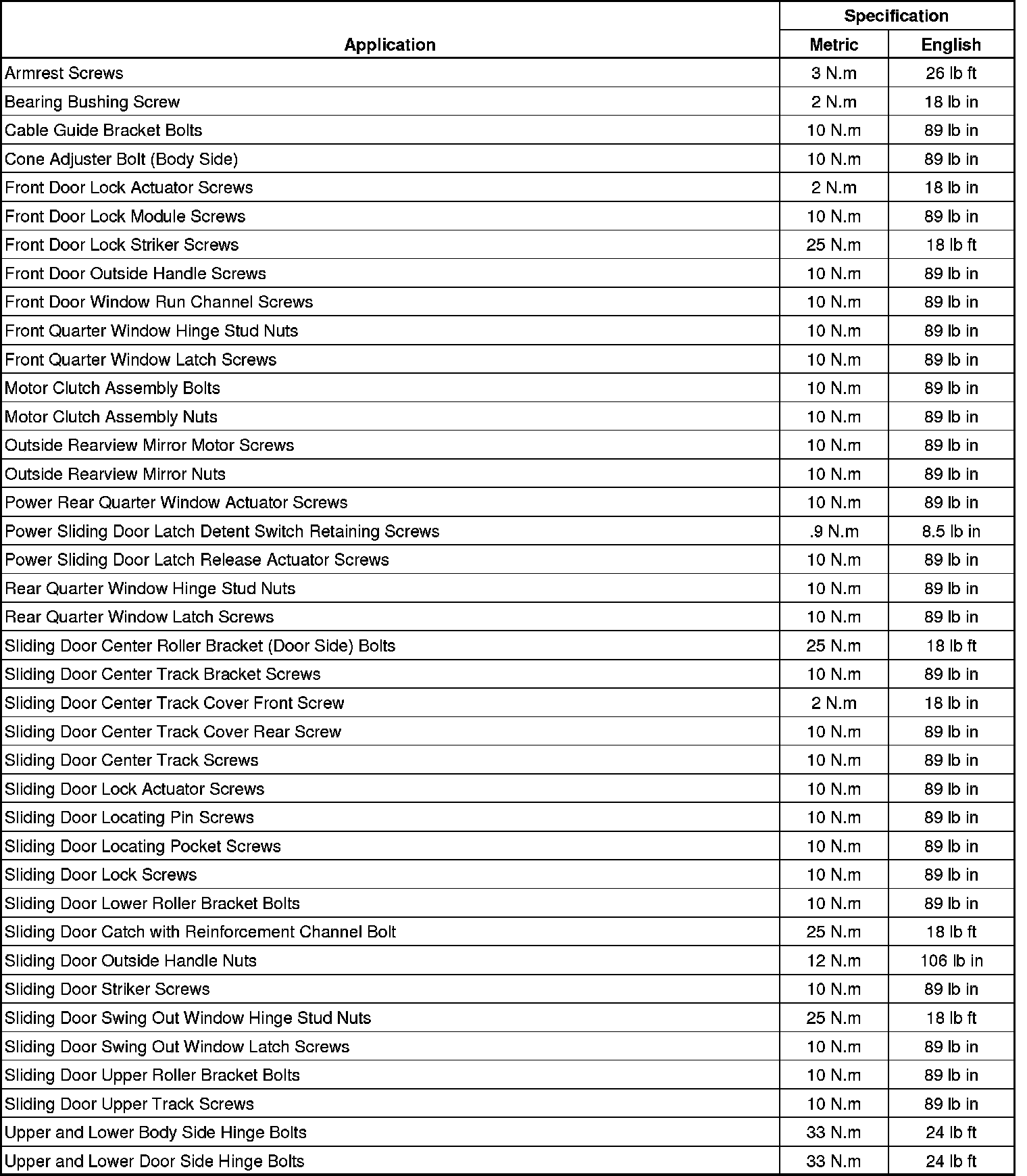Fastener Tightening Specifications