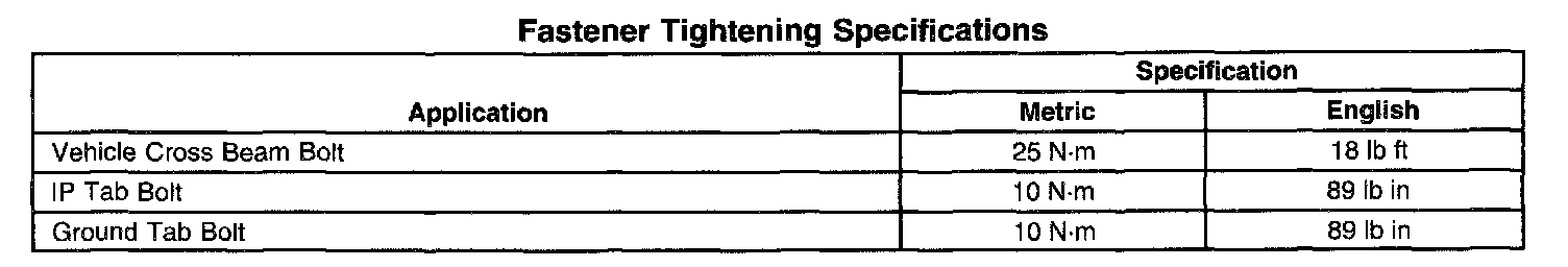 Fastener Tightening Specifications: