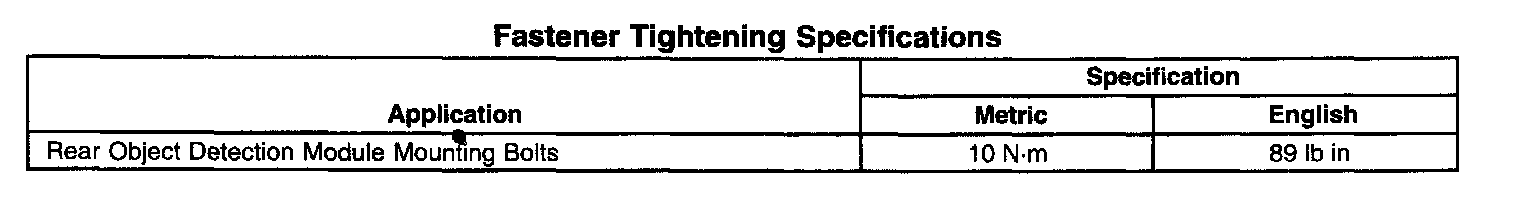 Fastener Tightening Specifications: