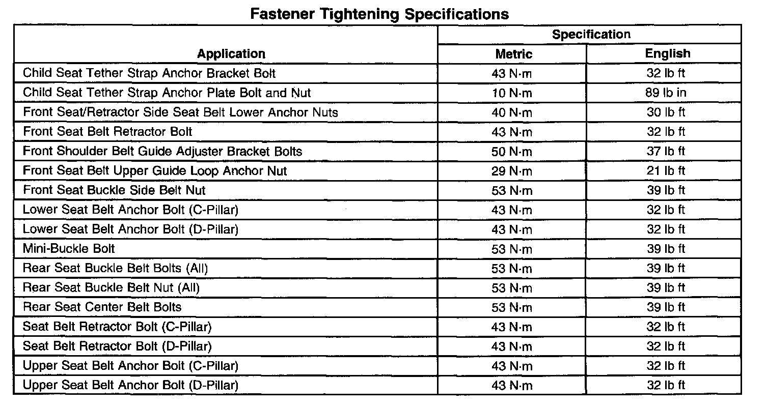 Fastener Tightening Specifications: