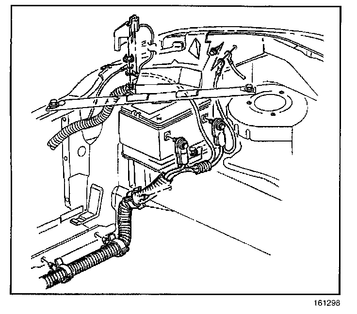 5. Remove the battery cable conduit retainers from the lower tie bar.