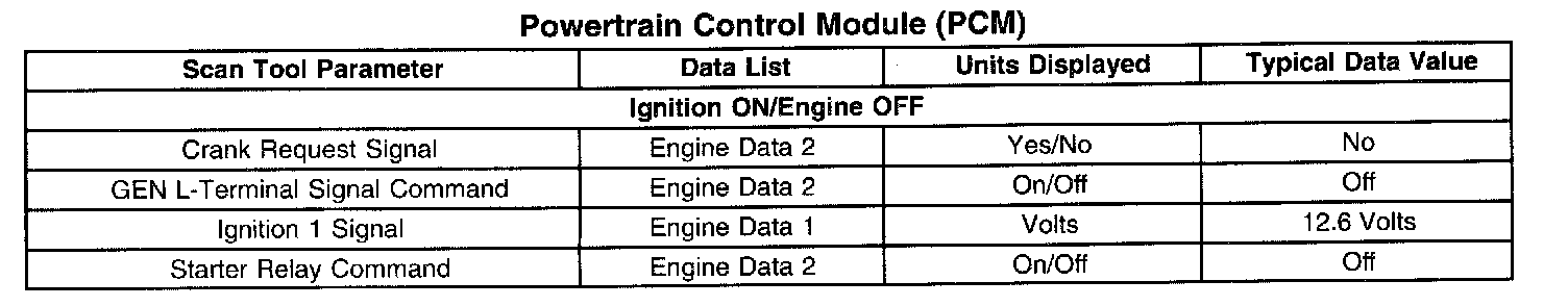 Scan Tool Data List - Powertrain Control Module (PCM)