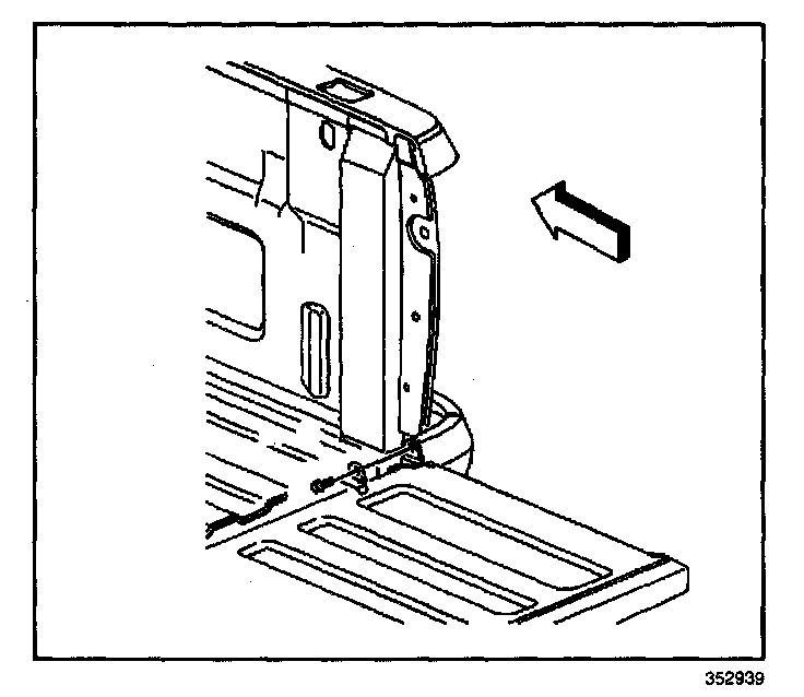 1. With an assistant, install the endgate onto the left body side hinge by sliding to the left and lifting.