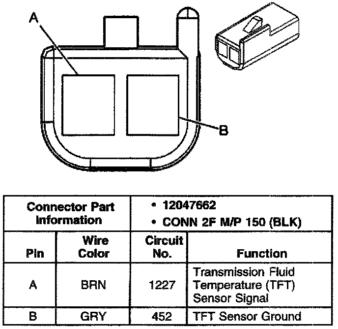 Transmission Fluid Temperature (TFT) Sensor Connector, Wiring Harness Side (4L80-E):