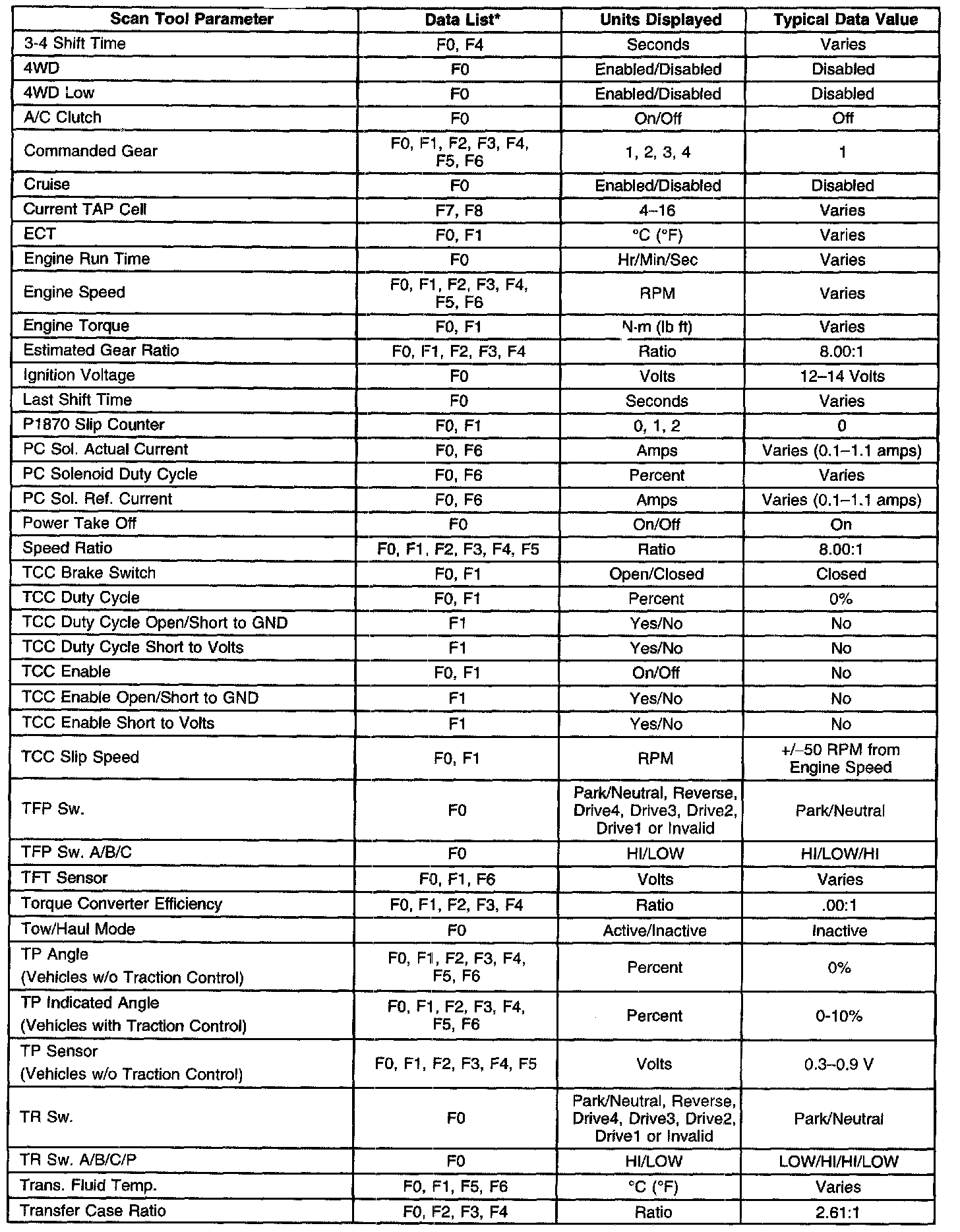 Transmission Scan Tool Data ListPart 1 of 3