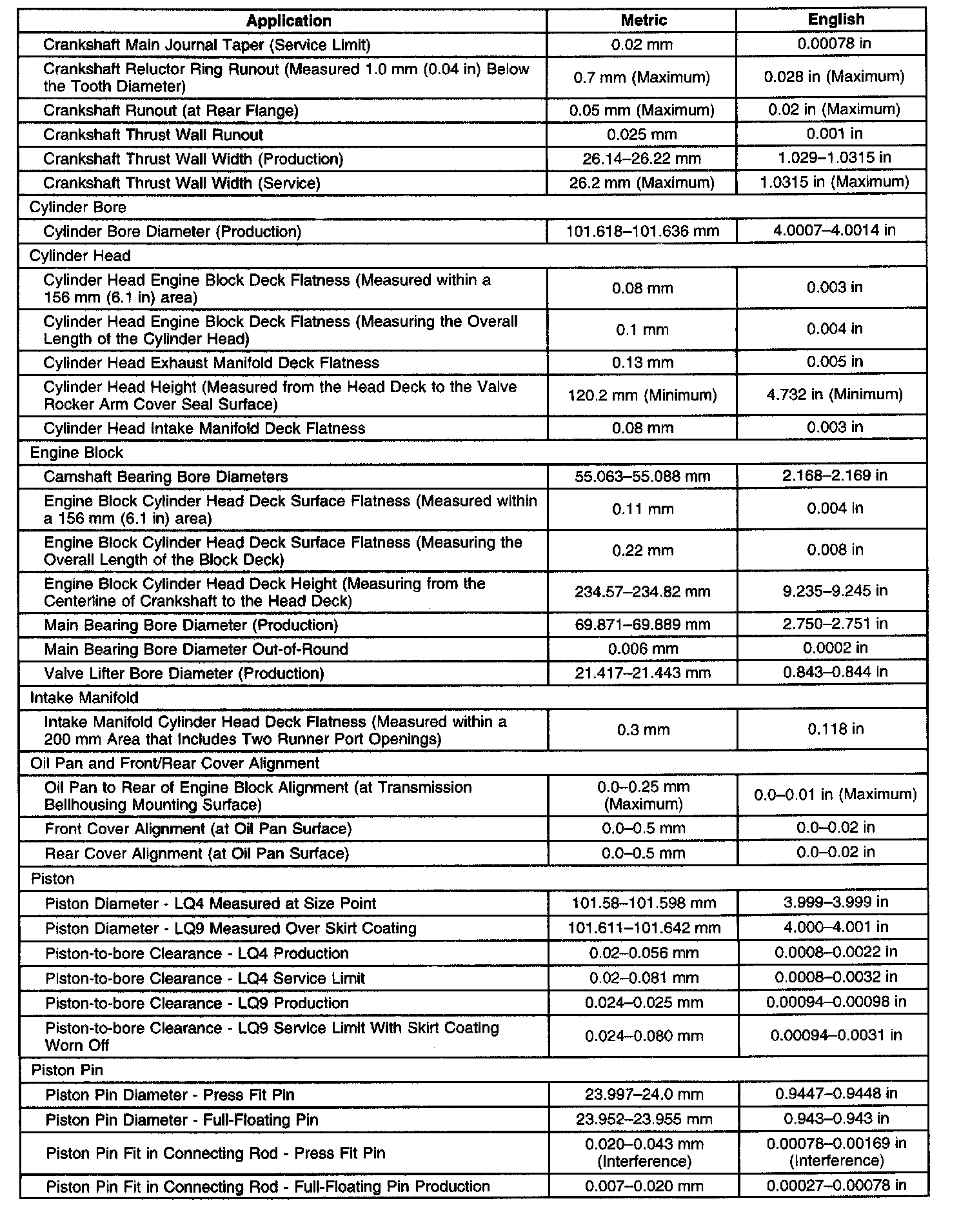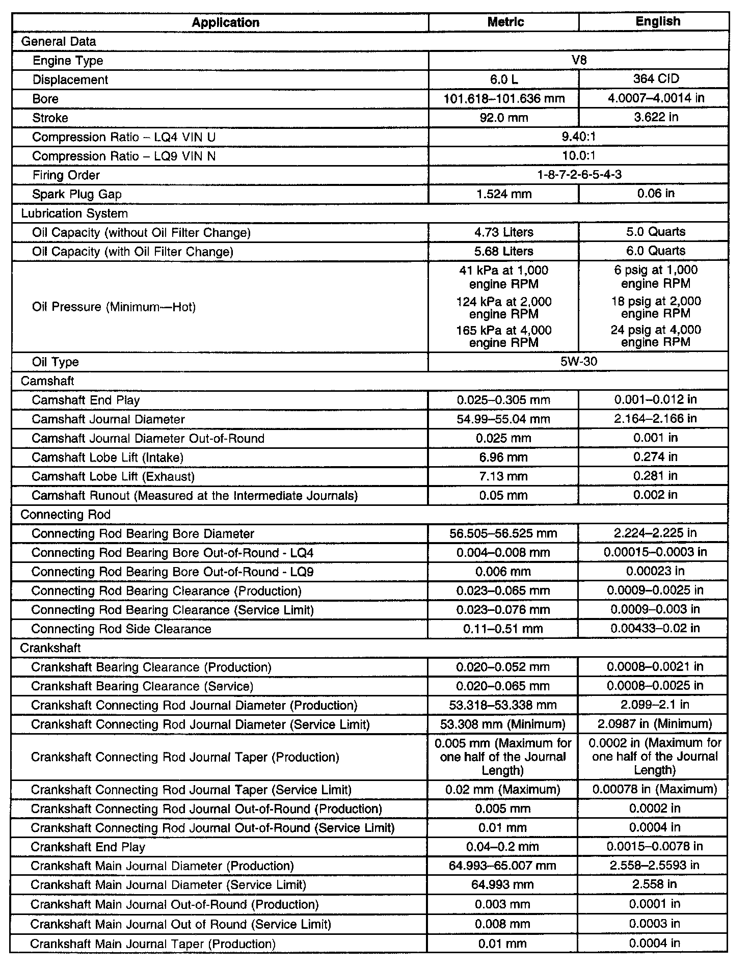 Engine Mechanical Specifications