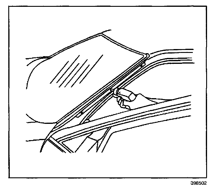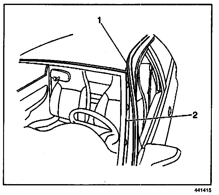 IMPORTANT: The upper window reveal molding fills the cavities between the body and window. If the reveal molding is stretched or damaged, replace the molding.