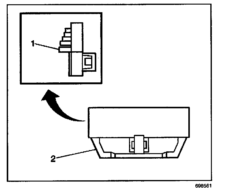 11. Remove the window lower supports (1) by using a flat-bladed tool, lightly prying upward in the middle until the support releases.