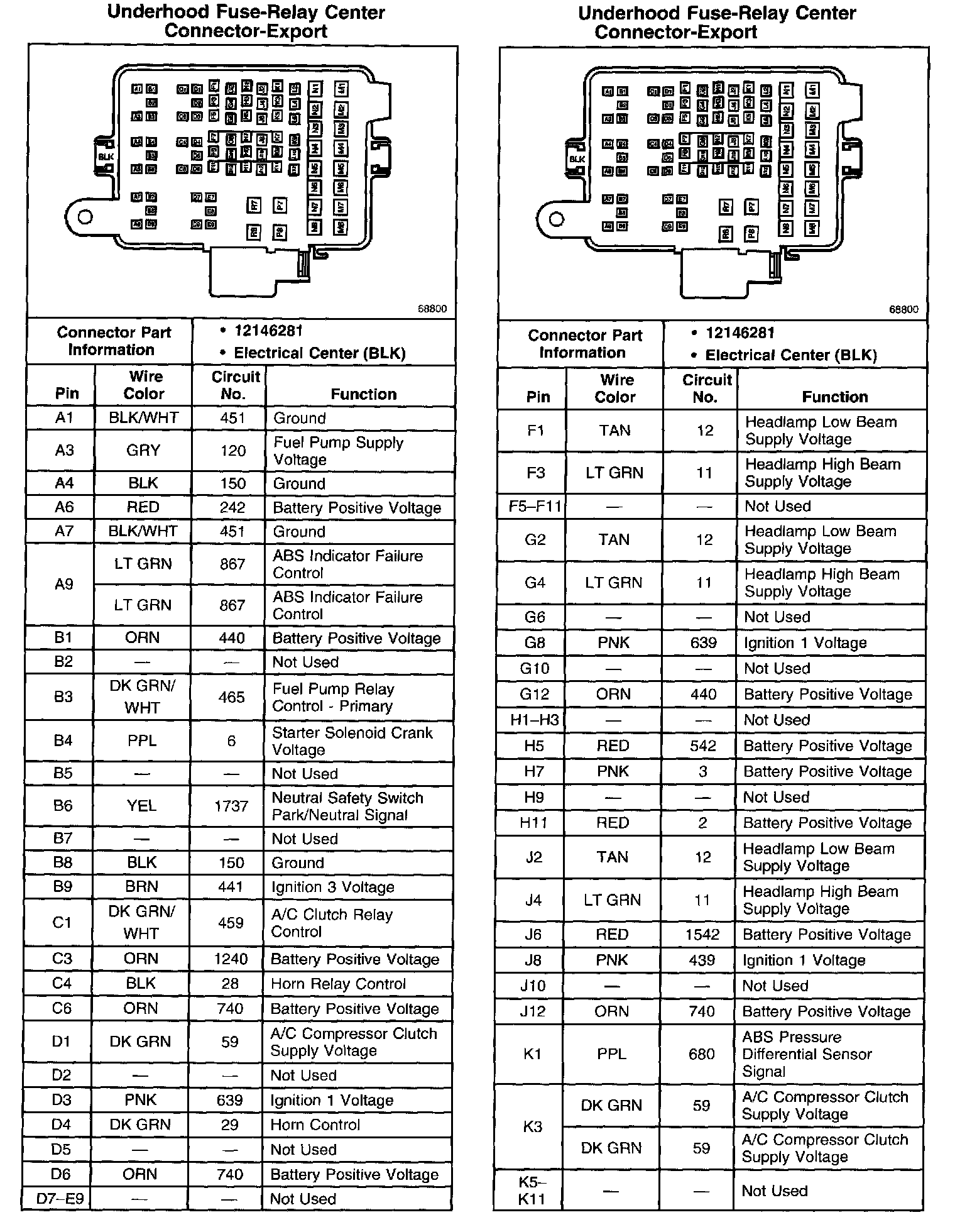 Underhood Fuse-Relay Center Connector-Export Part 2: