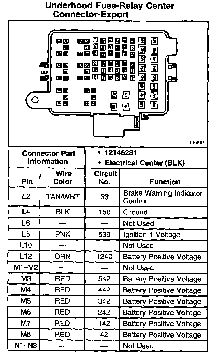Underhood Fuse-Relay Center Connector-Export Part 1: