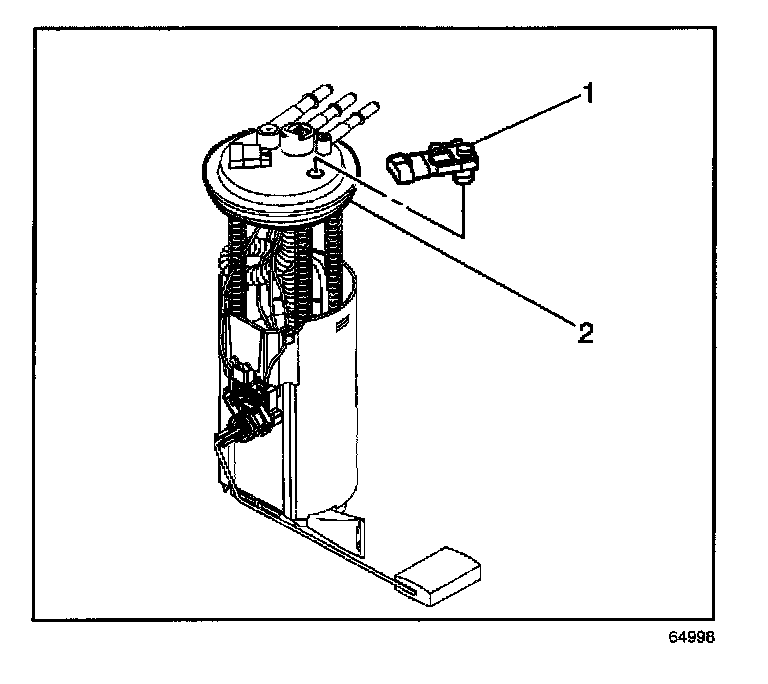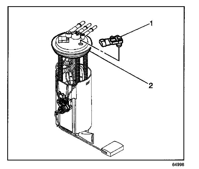 1. Install the fuel tank vapor pressure sensor (1) to the fuel modular sender (2).