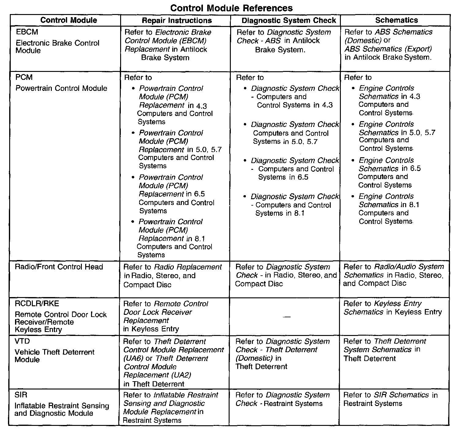 Control Module References