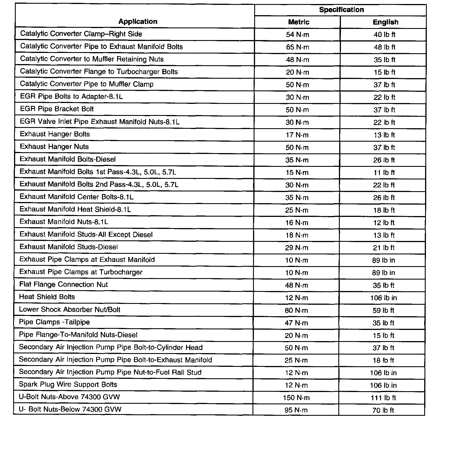 Exhaust System: Specifications