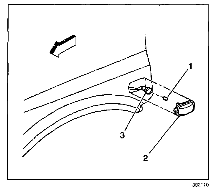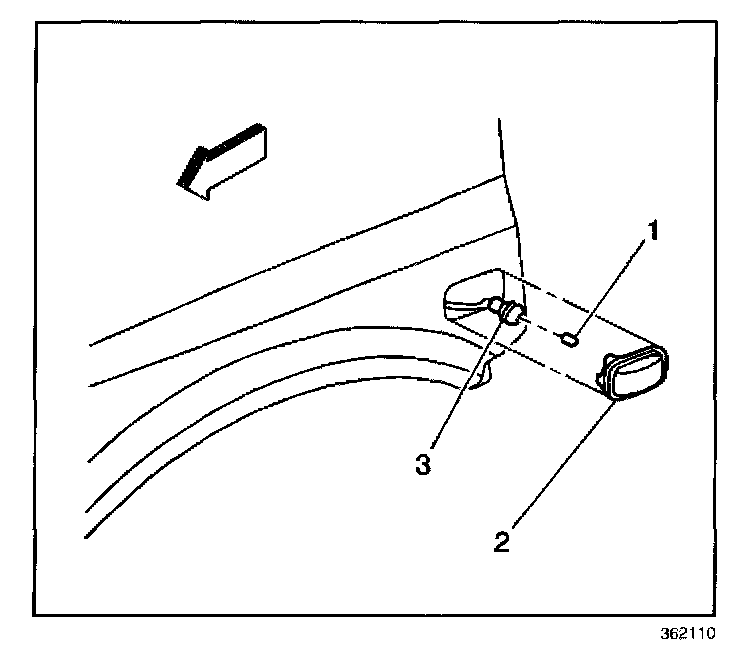 1. Push the light assembly (2) towards the front of the vehicle while gently prying the rear edge of the light assembly away from the fender in order to remove the light assembly.
