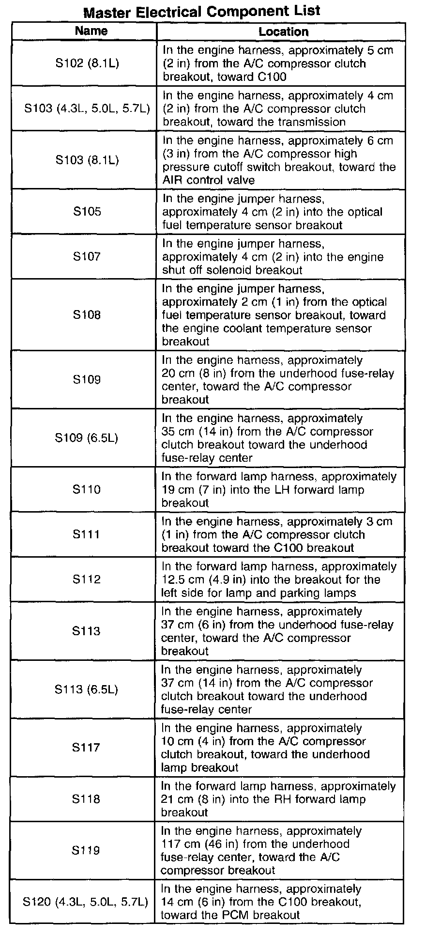 S101 (4.3L, 5.0L, 5.7L) - S102 (6.5L):