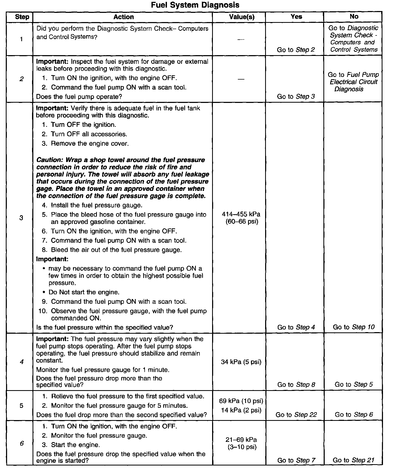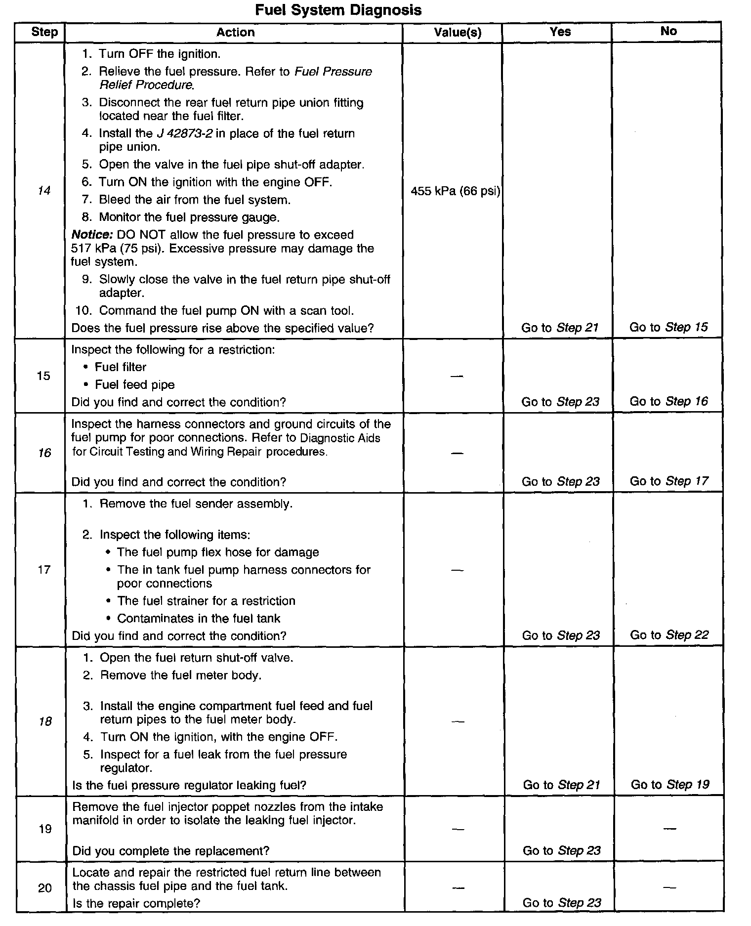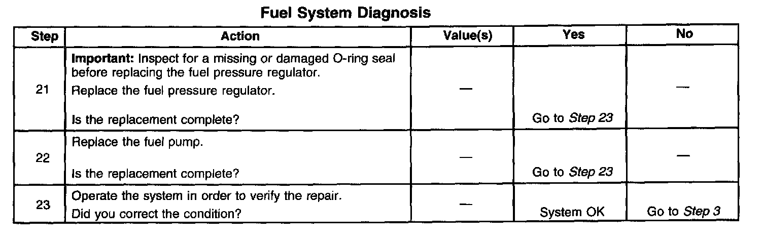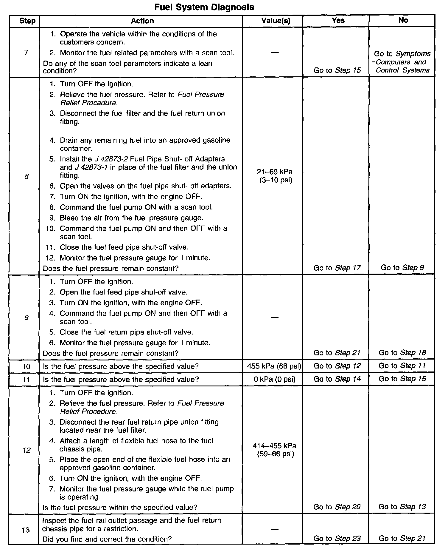 12. This step tests for a restricted fuel return pipe. If the fuel pressure is within the specified values, a restriction in the fuel return pipe is indicated.