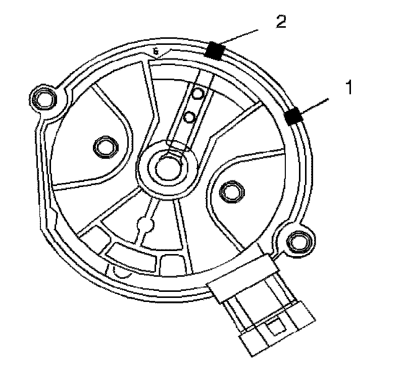13. Place a second mark on the base of the distributor (2). This will aid in achieving the proper rotor alignment during the distributor installation.