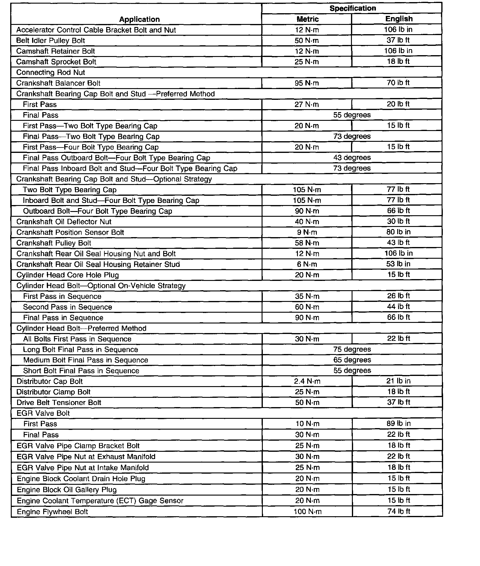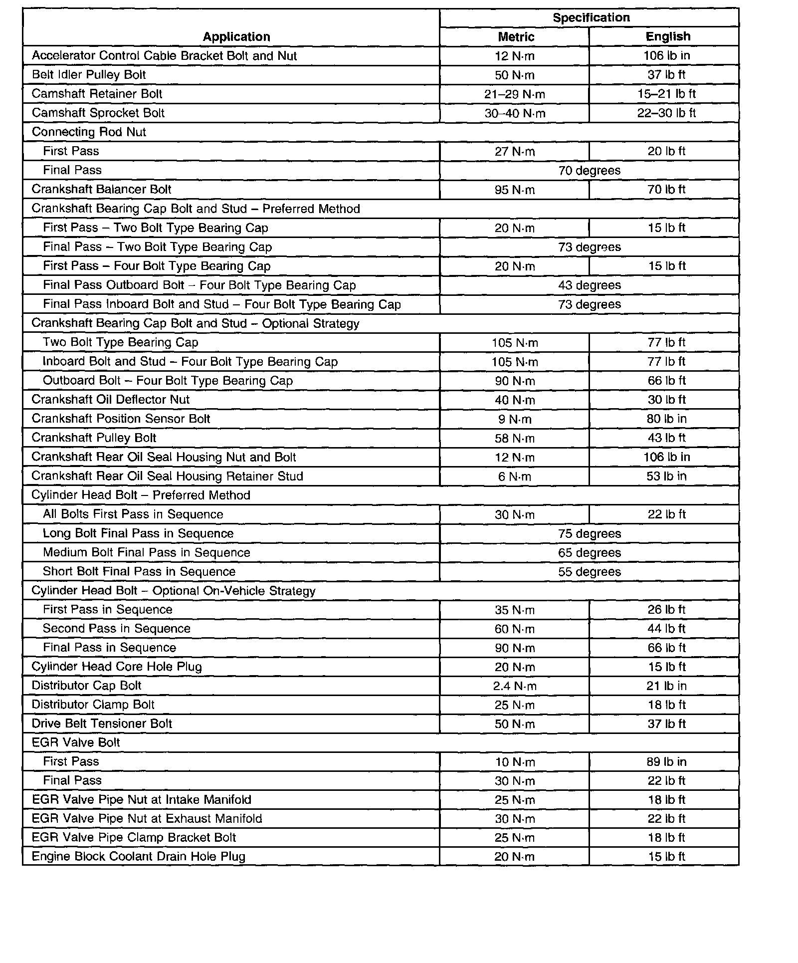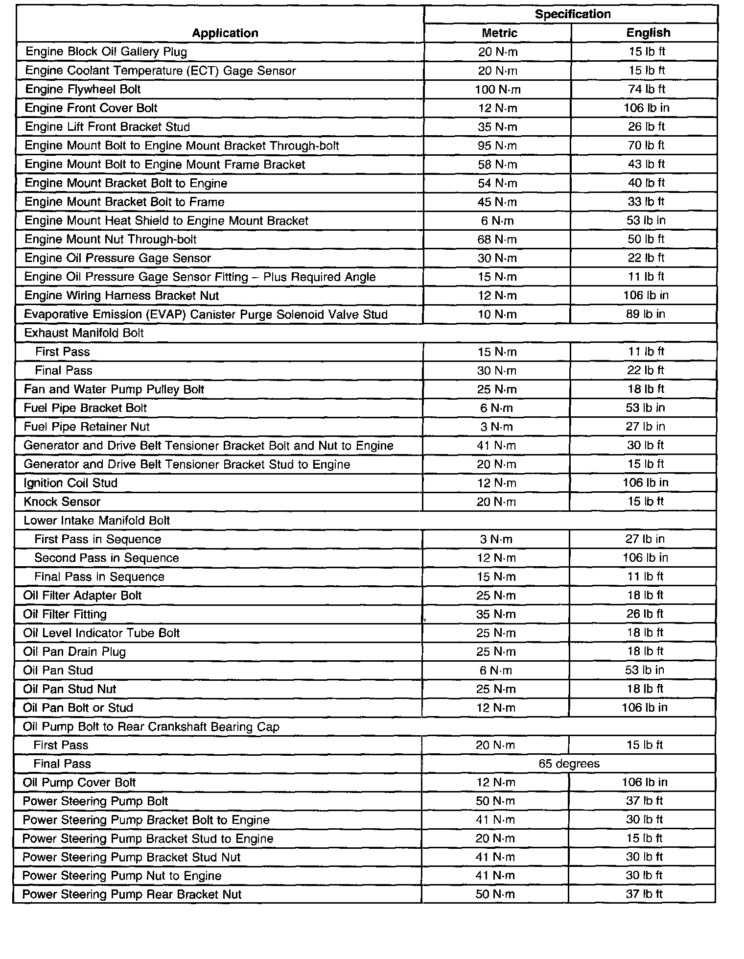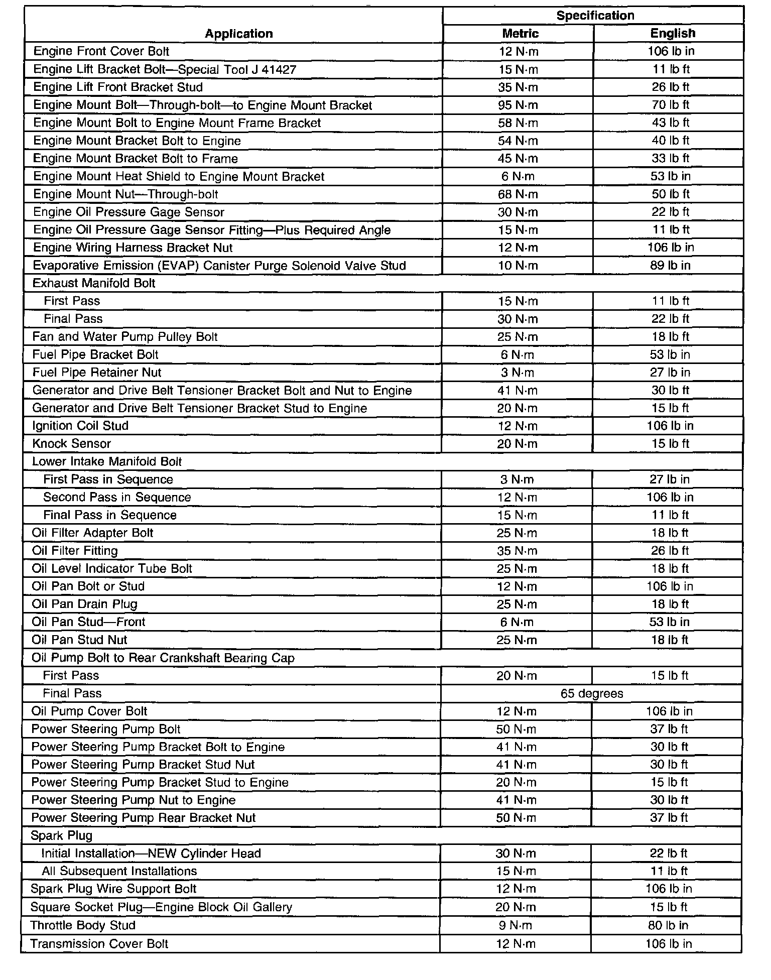 Fastener Tightening SpecificationsGeneral