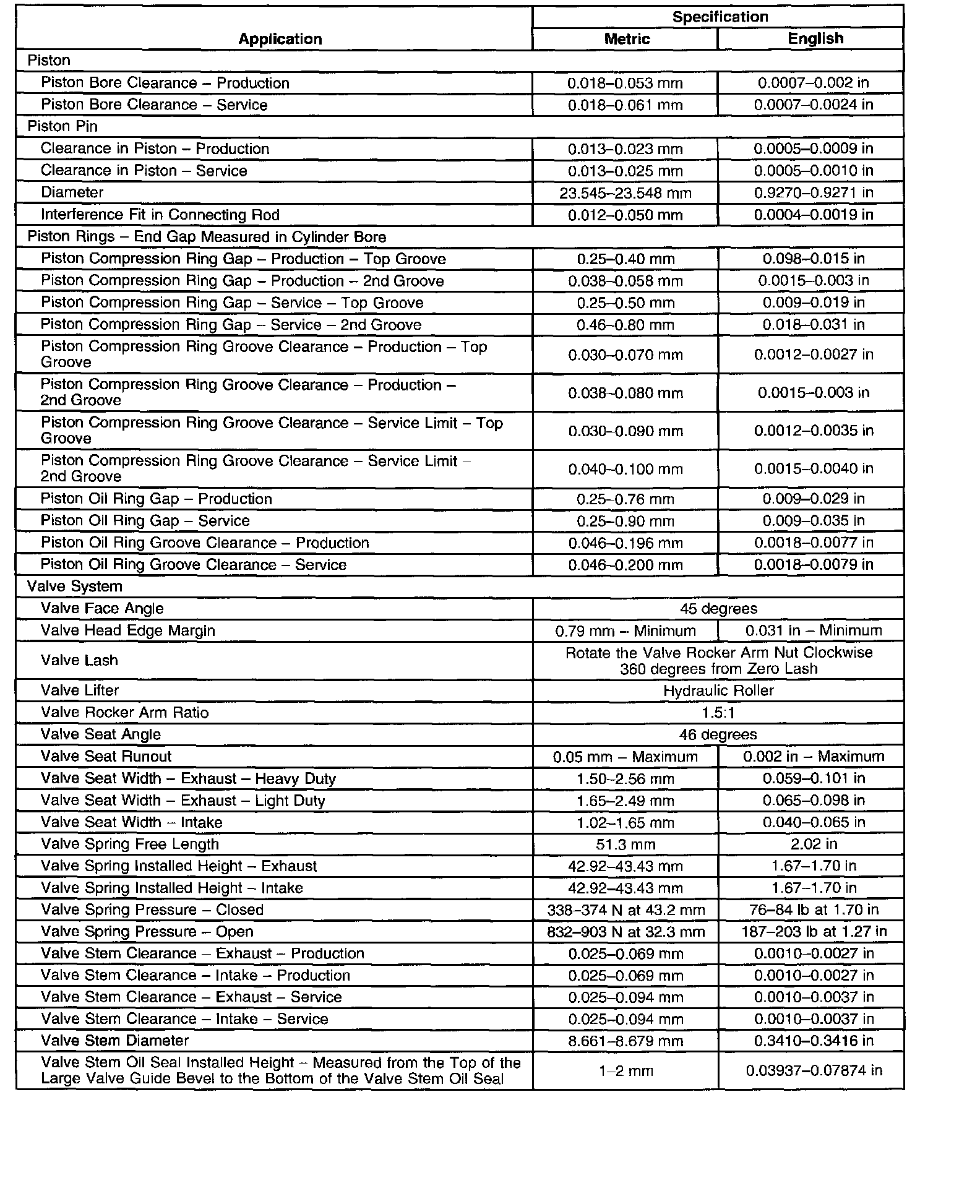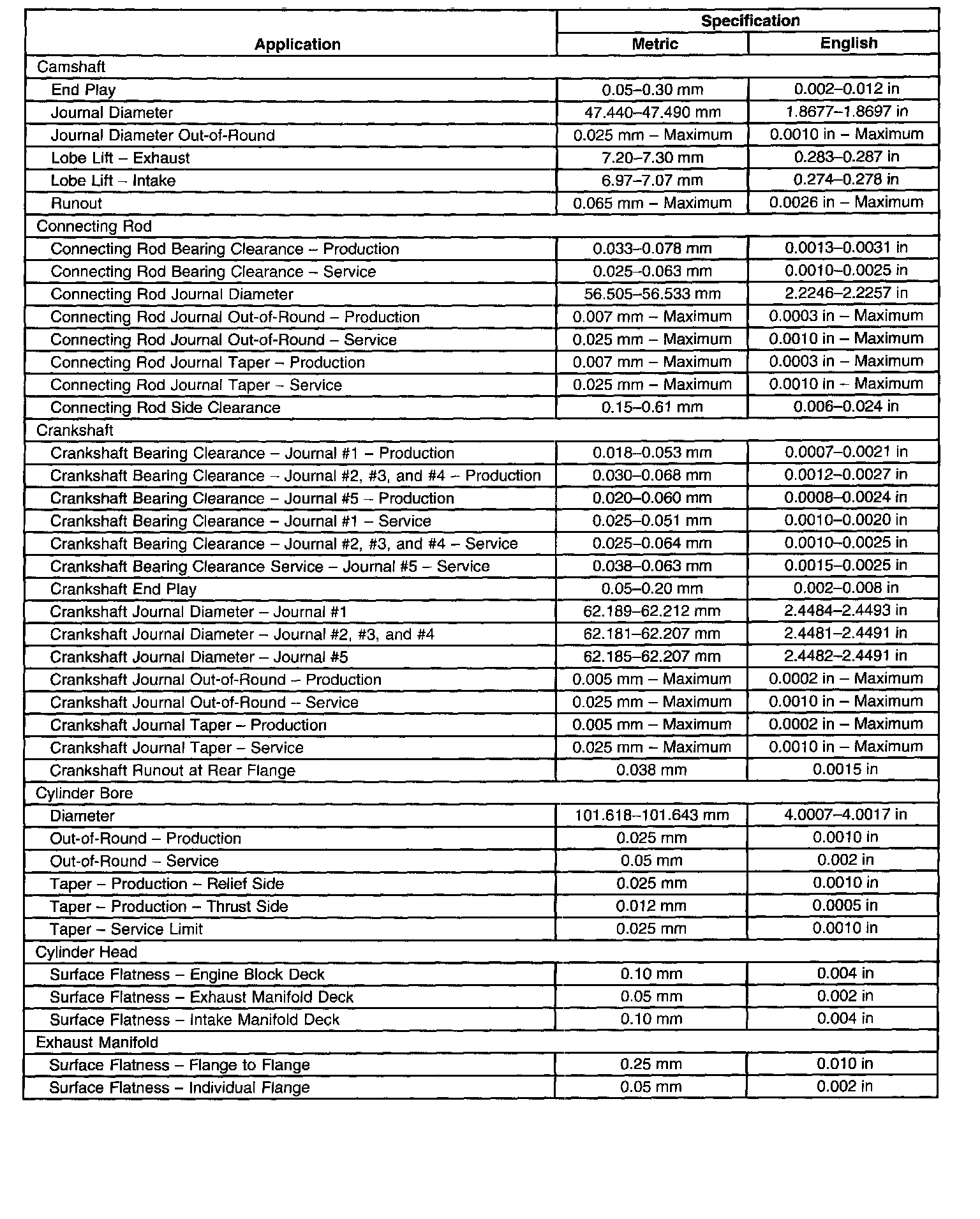 Engine Mechanical Specifications