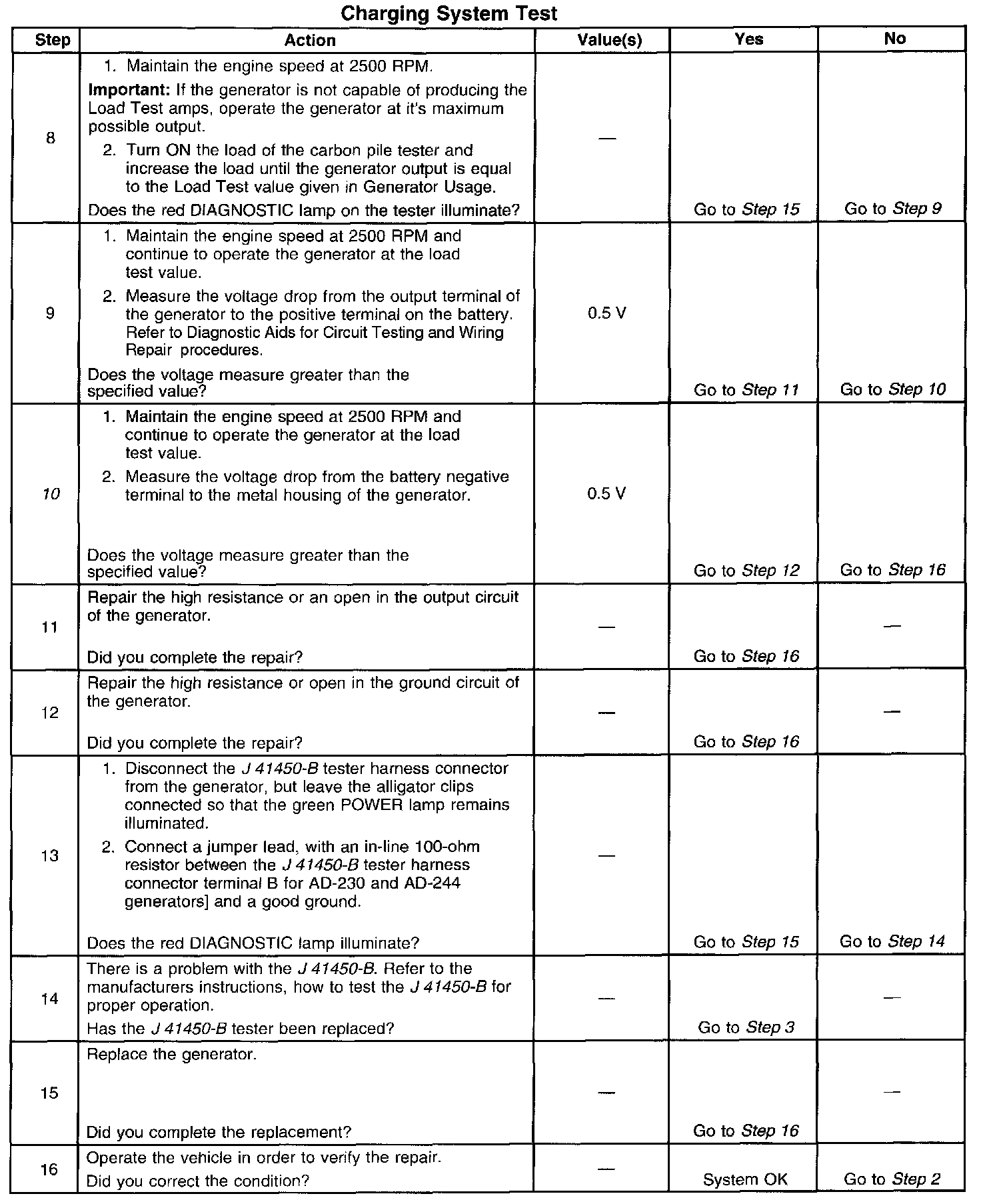 10. If the test has shown the generator to be OK, however the condition remains, test the PCM or its control circuit(s) to the generator.