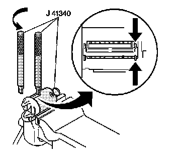 3. Hold the punch, part of J 41340 , squarely against the end of the punch slot on J 41340 .