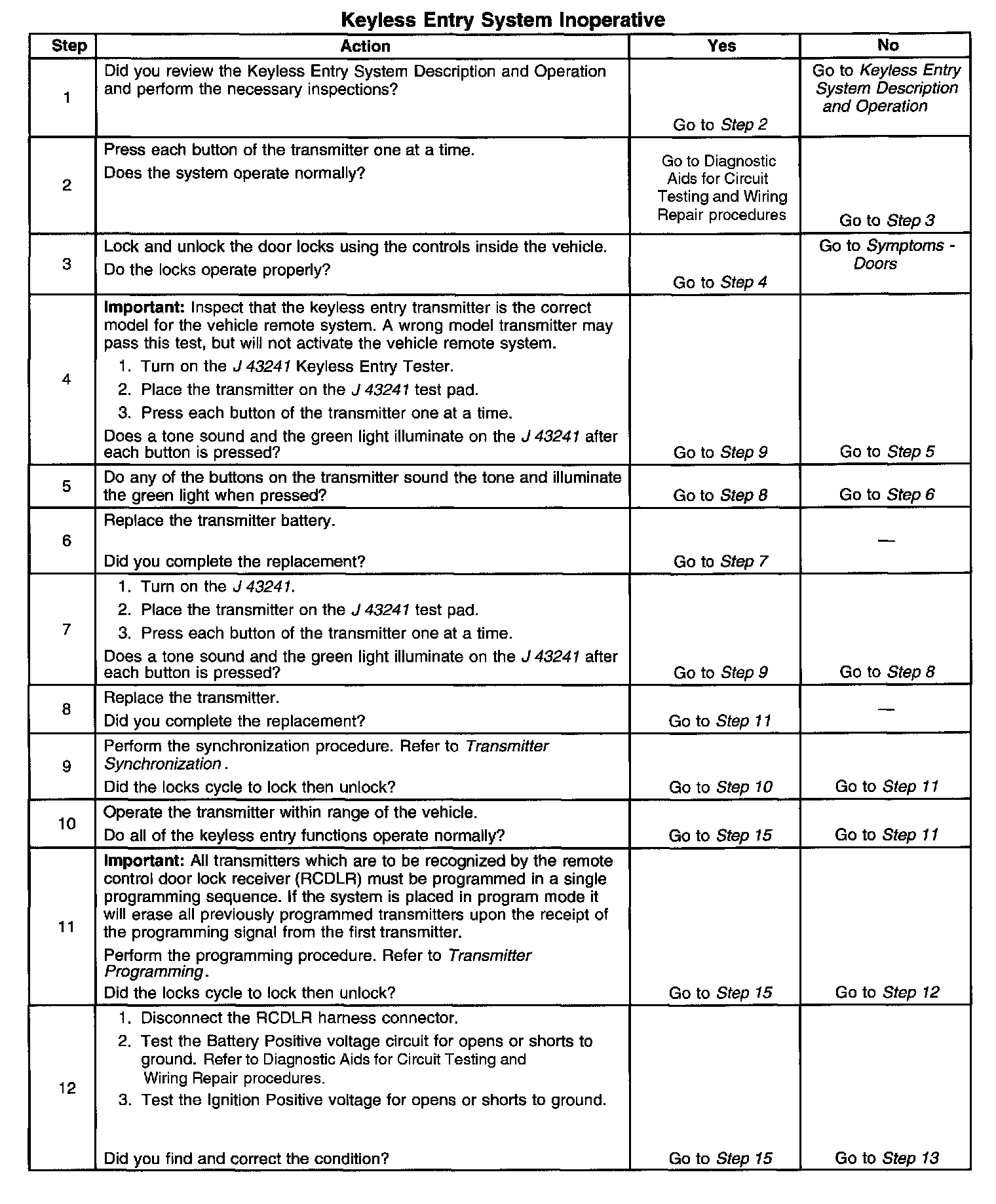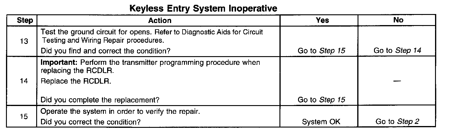 Keyless Entry System Inoperative