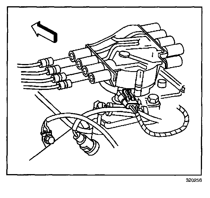 3. Disconnect the spark plug wires and ignition coil wire from the distributor.