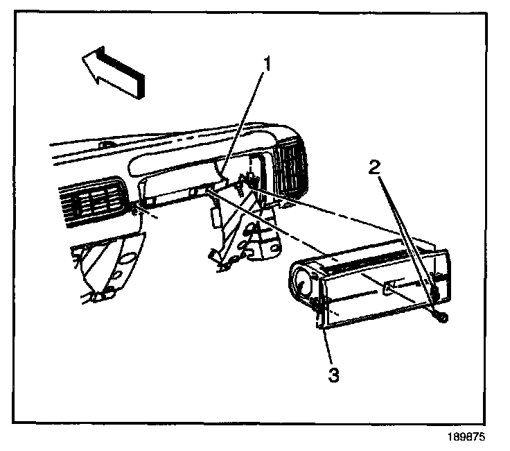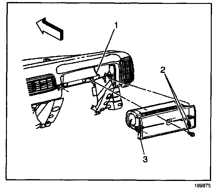 1. Install the inflatable restraint I/P module (3) to the I/P carrier (1).