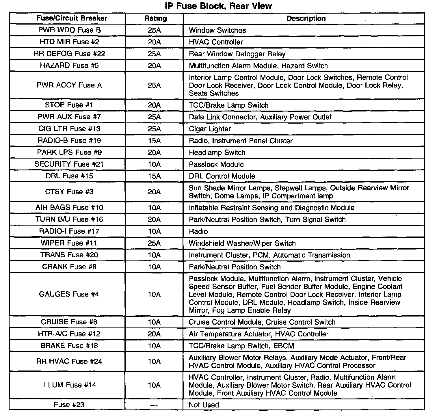 IP Fuse Block, Rear View Part 1: