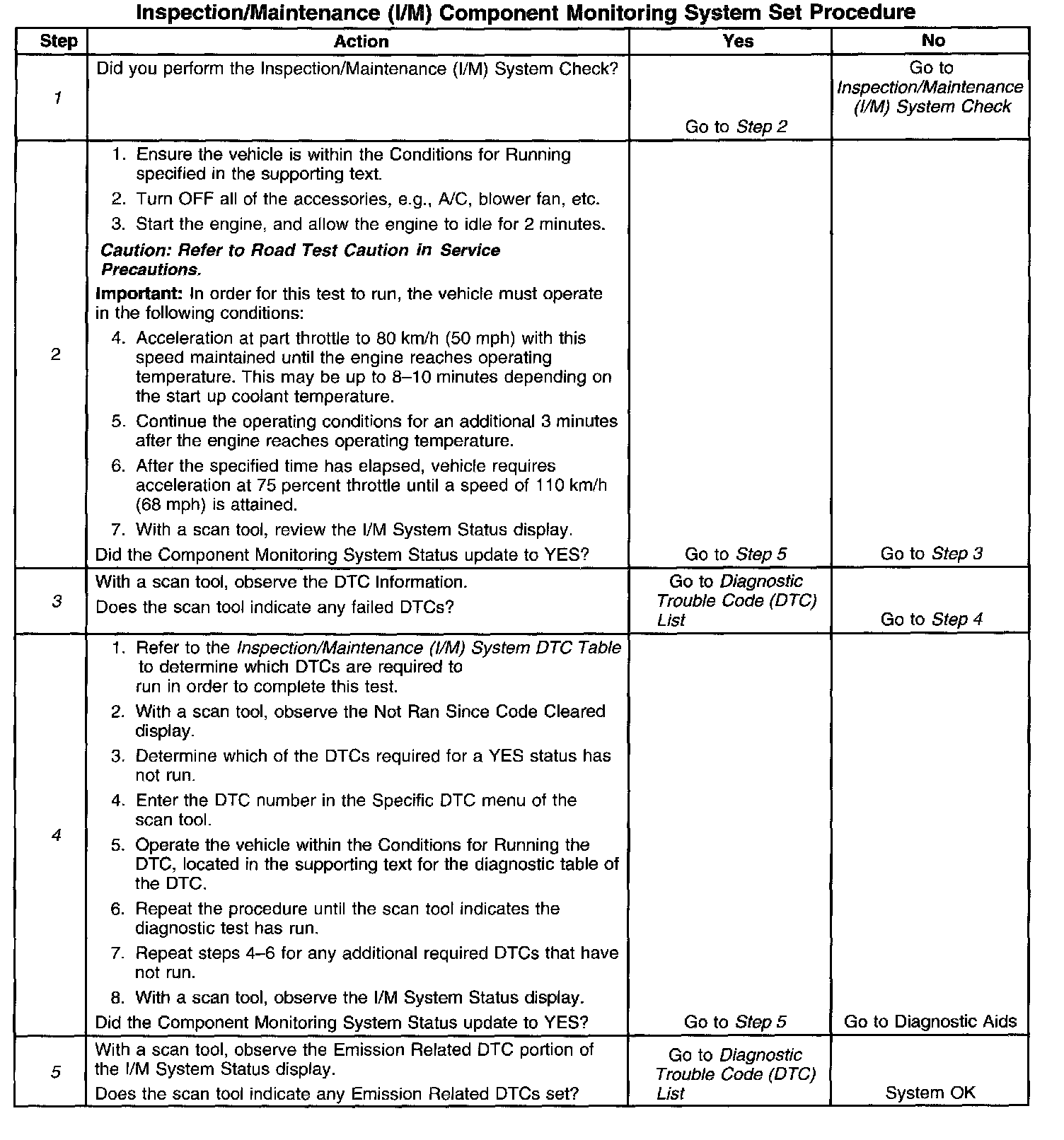 5. The l/M System Status only reports on whether or not a diagnostic test has run, not the outcome of the test. If any Emission Related DTC sets after the tests are complete, the DTC will require diagnosis.