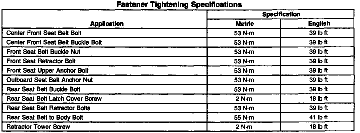 Fastener Tightening Specifications: