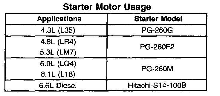 Starter Motor Usage: