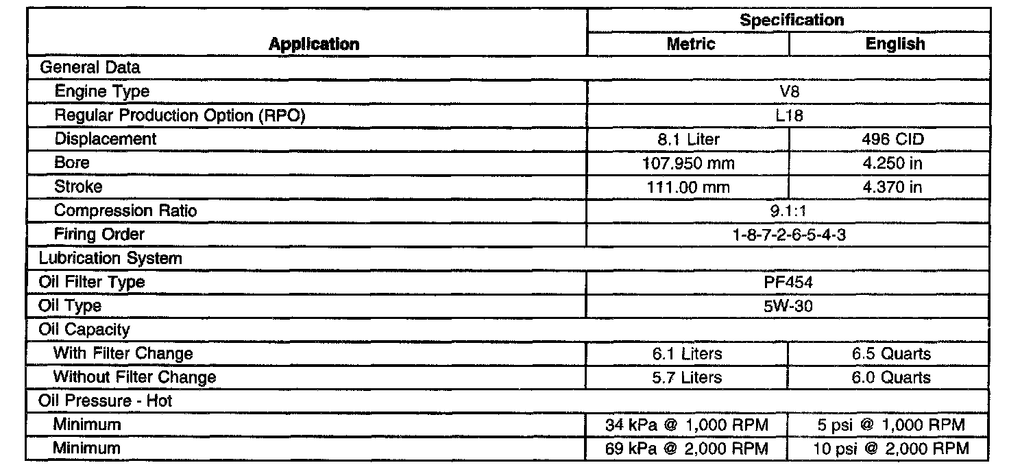 General Engine Data/Specifications
