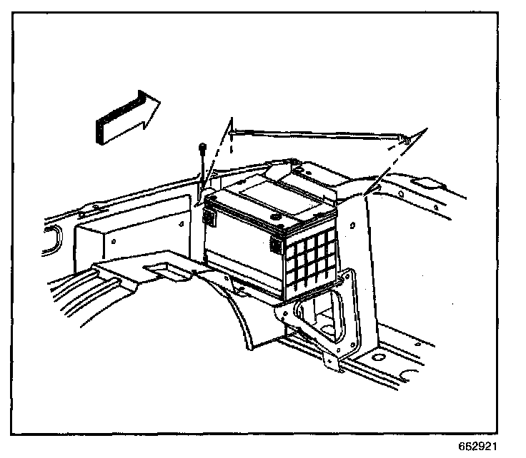 3. Install the battery hold down retainer and bolt.