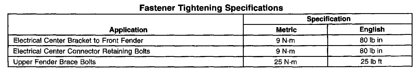 Fastener Tightening Specifications: