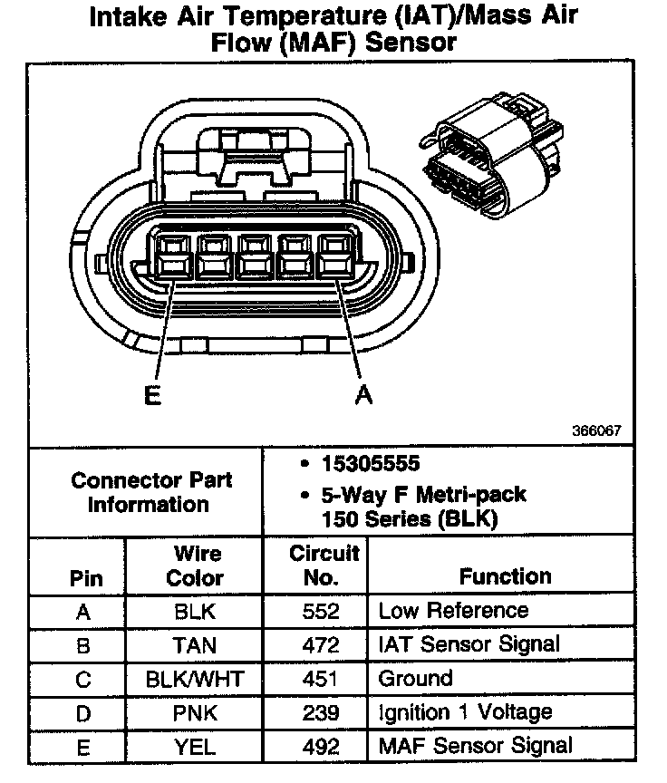 Intake Air Temperature (IAT)/Mass Air Flow (MAF) Sensor: