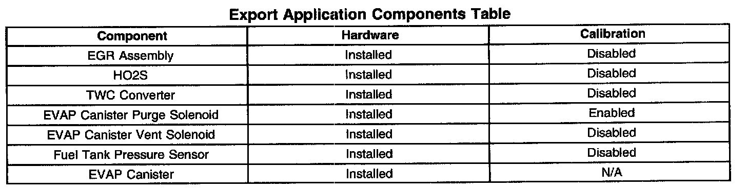 Export Application Components Table:
