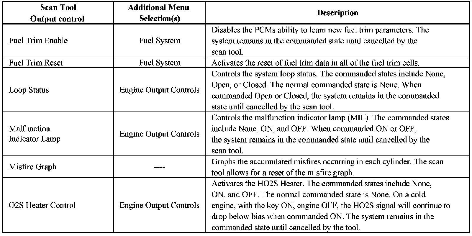 Scan Tool Output Controls