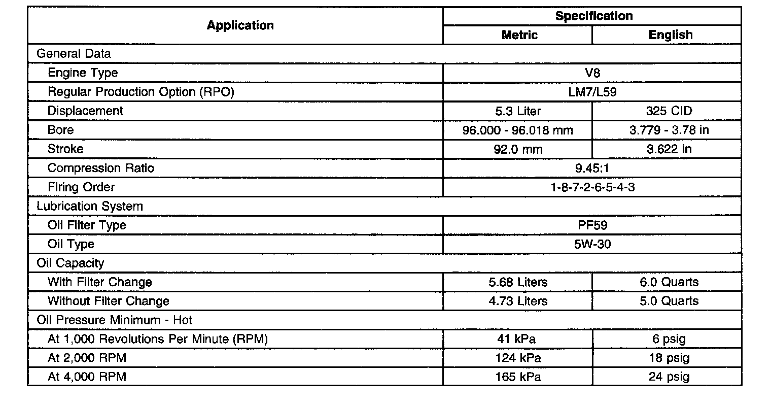 General Engine Data/Specifications