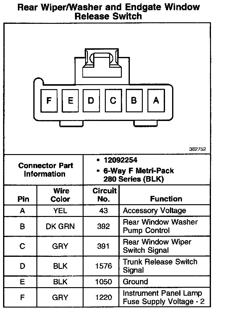 Rear Wiper/Washer And Endgate Window Release Switch: