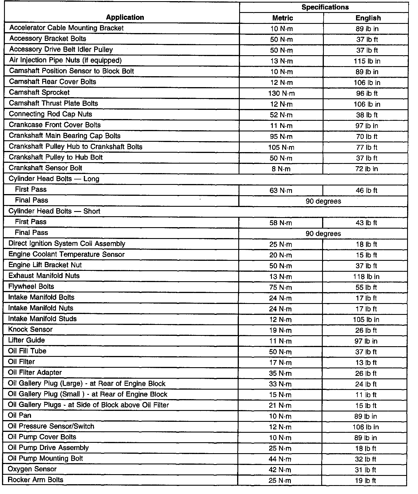 Engine Mechanical Specifications