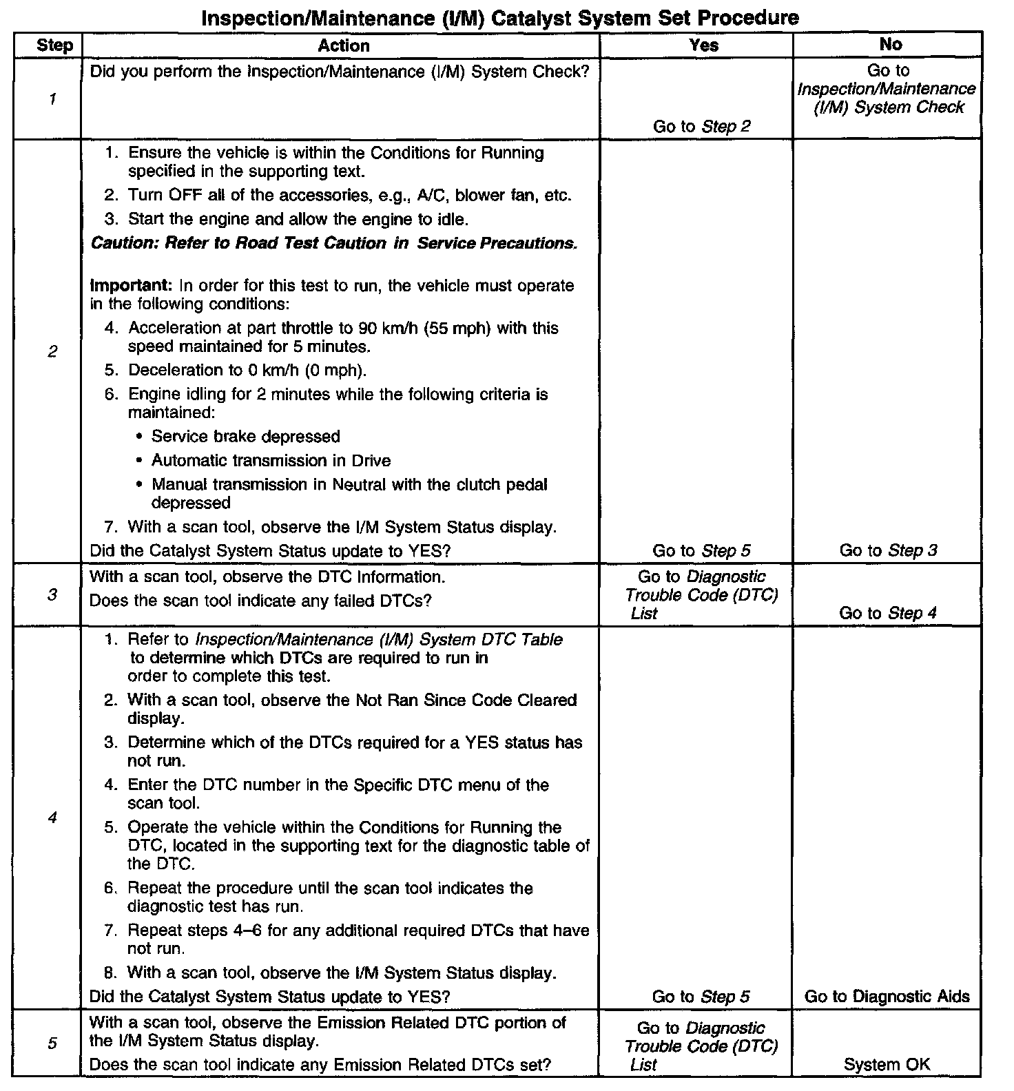 1. Make sure you perform the I/M System Check before performing this test. Failure to do so may result in difficulty updating the status to YES. Inspection/Maintenance (I/M) System Check