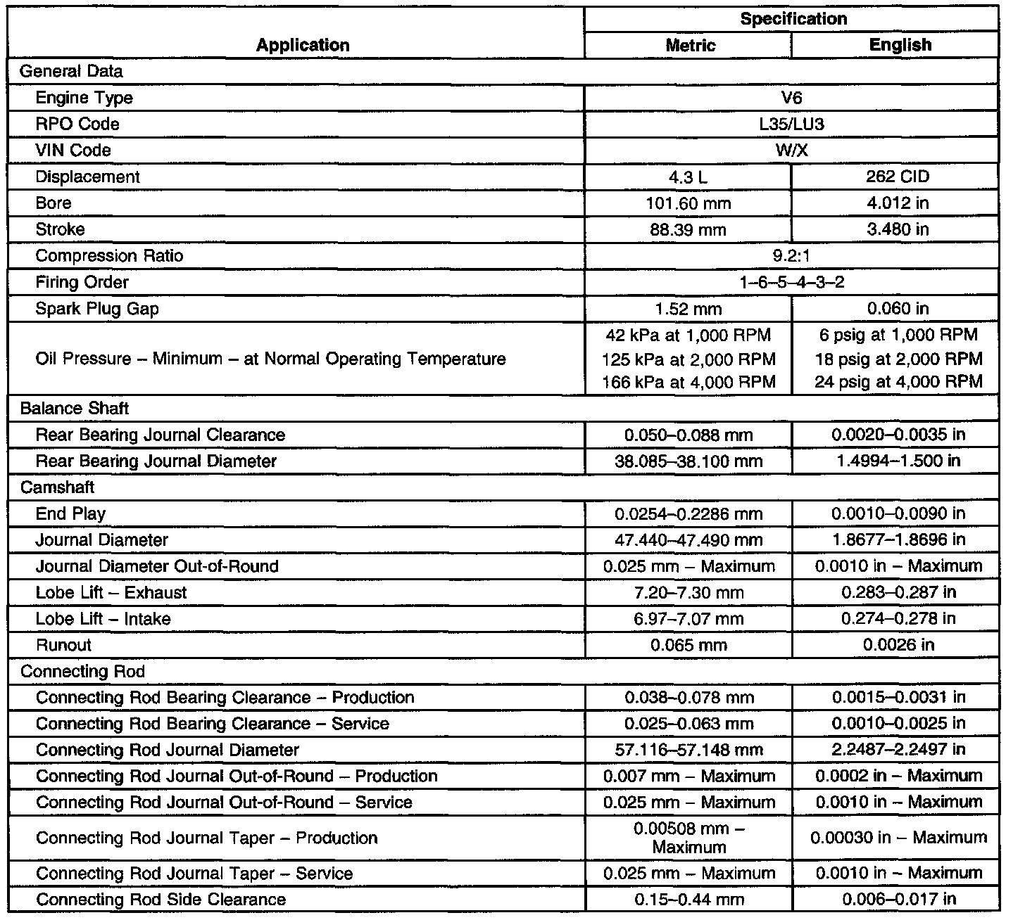 S10/T10 P/U 2WD V6-4.3L VIN W